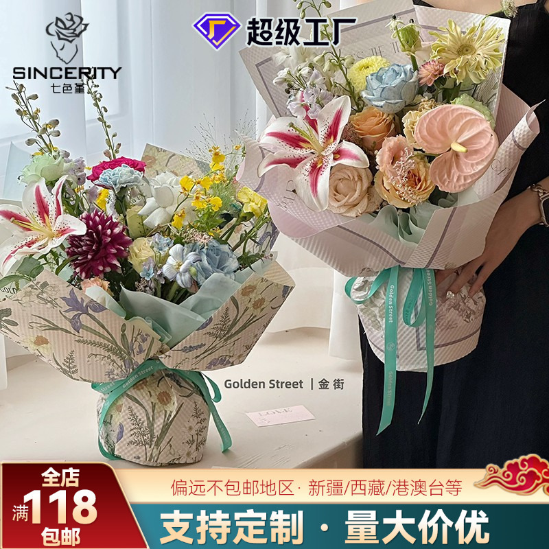 七色すみれ田园スレッドバッグ花纸ブーケギフト花芸高级感包装材鲜手包装纸