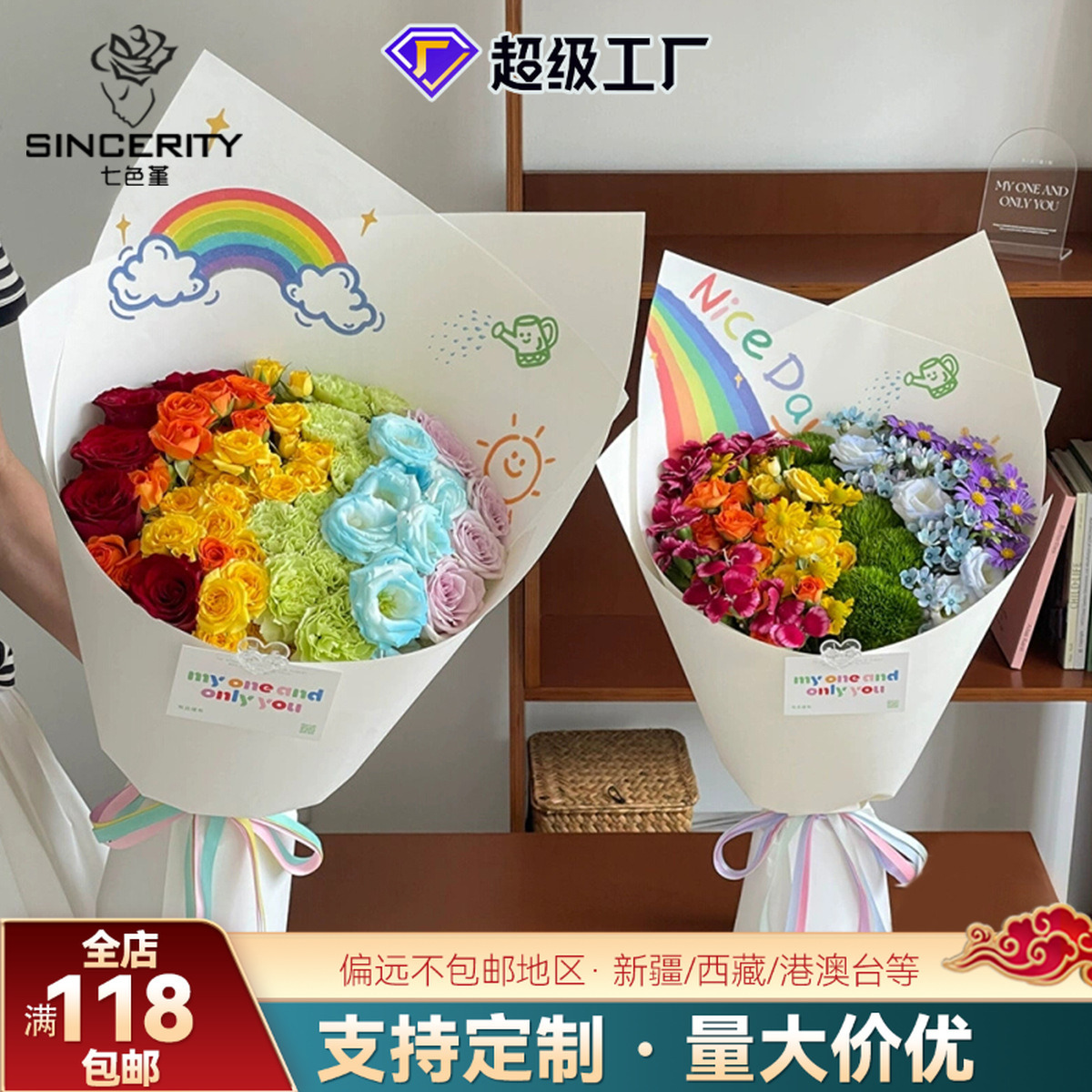 セブンカラーバラクリエイティブレインボーカラー花包装紙クラフト紙 DIY 手作りフラワーショップフラワー包装紙