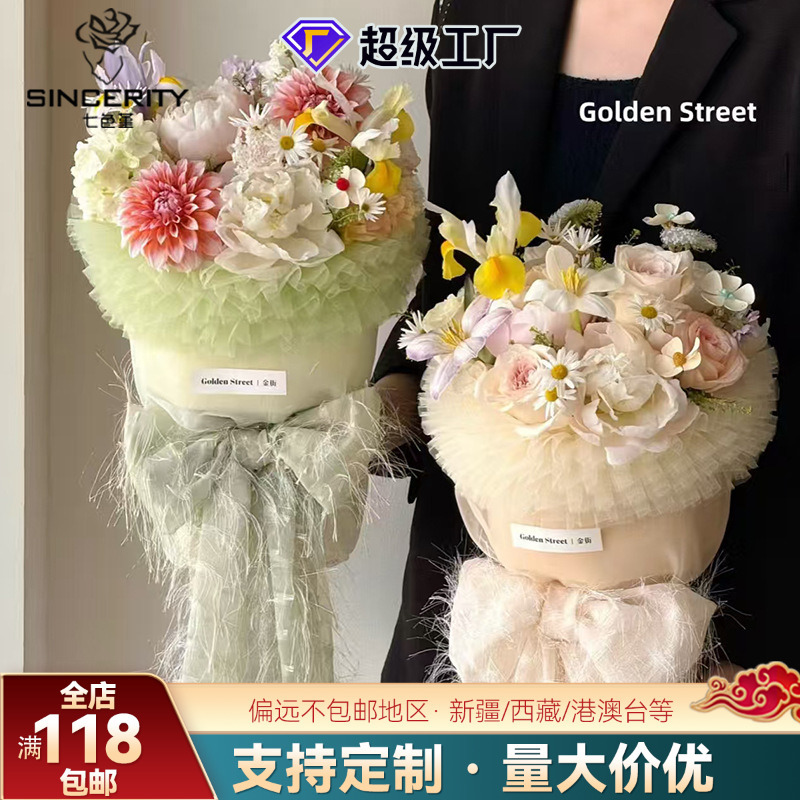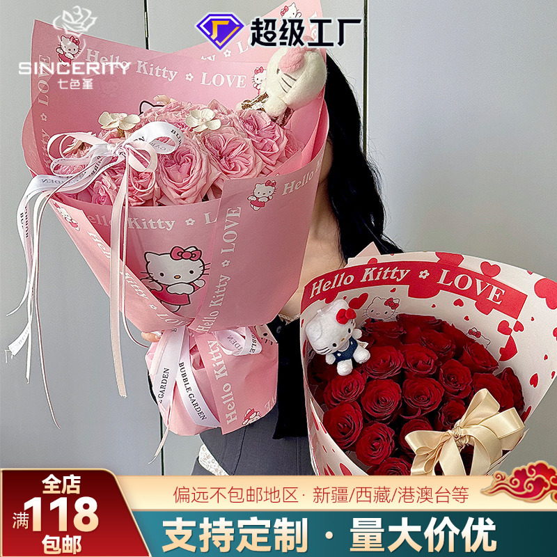 セブンカラーバッドオールインワンアイスクリームブーケ包装花包装フラワーショップDIYフラワーアート包装紙包装