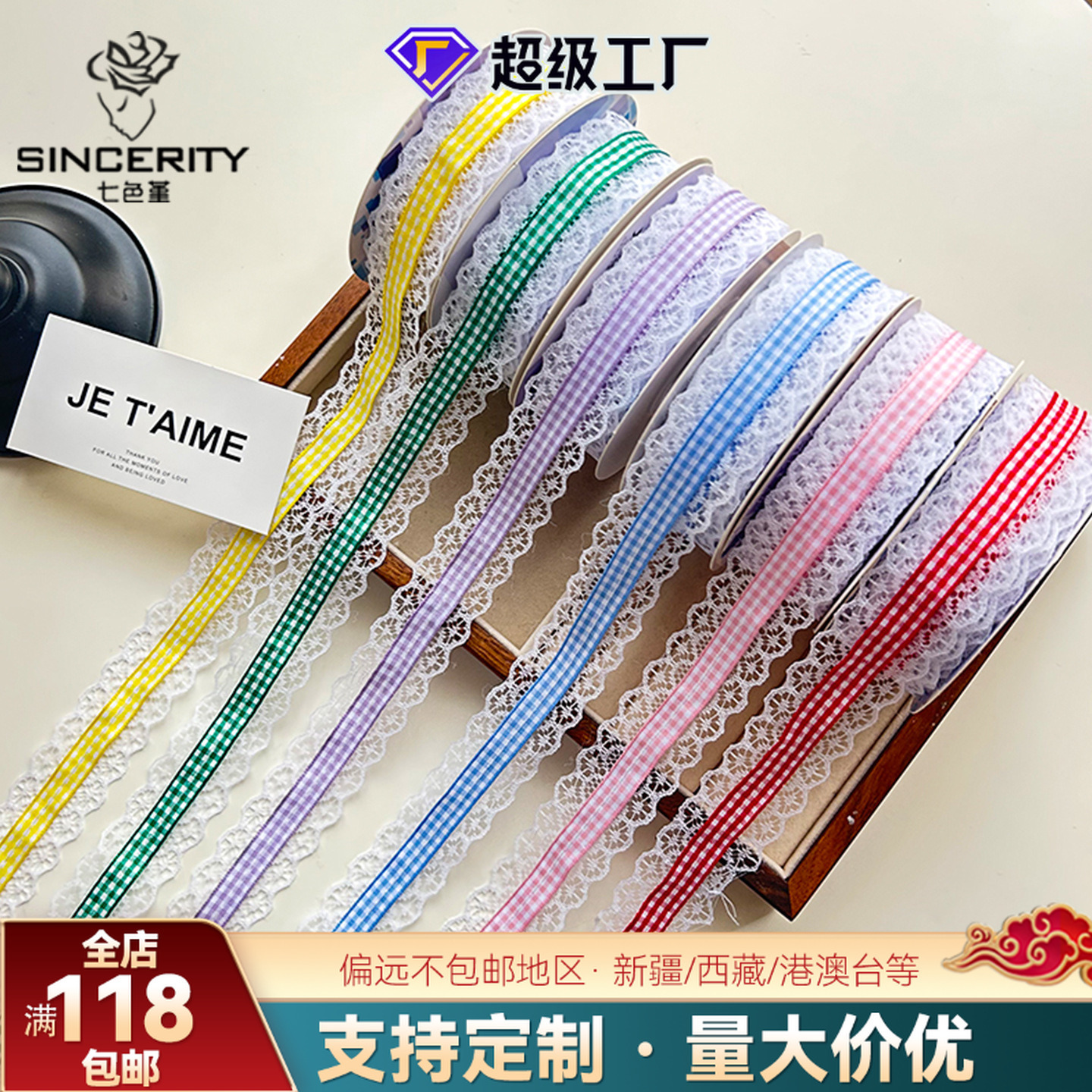 セブンカラーバッド英国スタイルレースチェック柄リボンブーケ包装リボンフラワーパッケージ DIY リボン素材包装