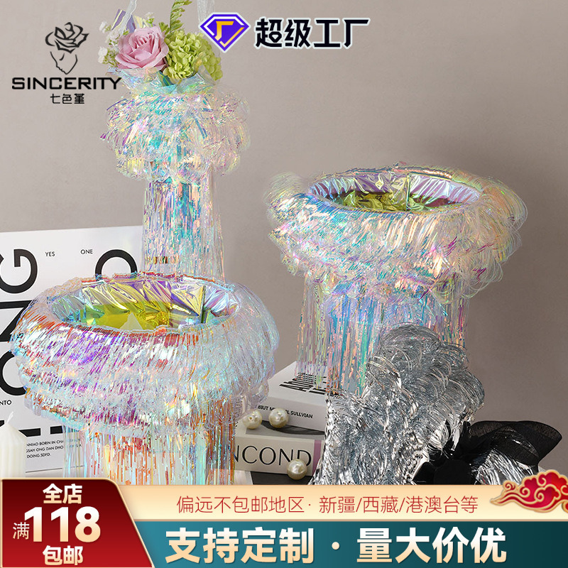 七色すみれクラゲ花束幻彩カラフルグラデーションレーザー紙透明カラフル虹膜生花花屋用品