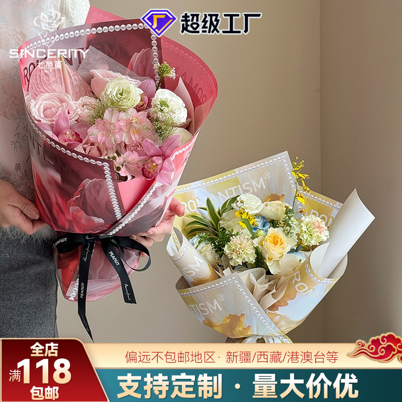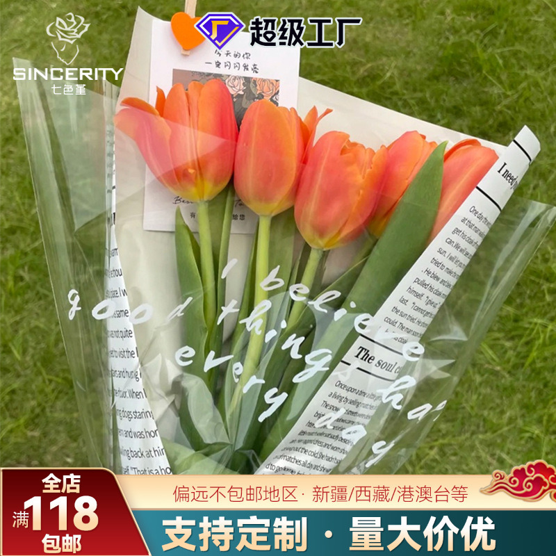 Ins韓国式包装袋多枝生花袋opp英語花束袋複数本バラ花芸材料花屋透明