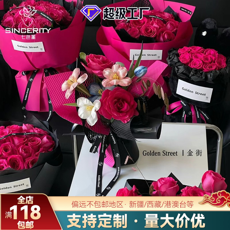七色すみれバービーピンクブラックシリーズ生花包装紙厚手防水バラ花芸花屋包装材