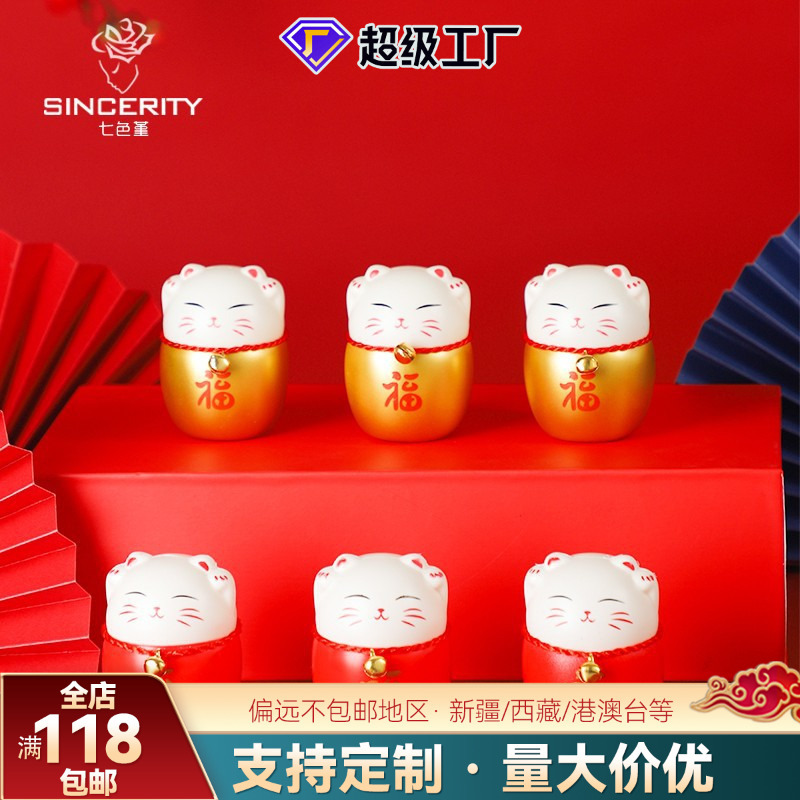 七色のすみれの赤い招き猫のお祝いの装飾の赤い福桶の冬の青のペンダントの年の夜花の部品の生け花の装飾