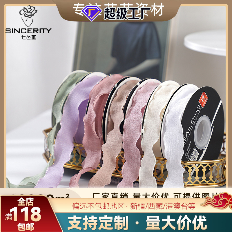 七色すみれ4cmシワレースリボン手作りdiyケーキ饰りリボンスカートギフトお花ラッピングリボン