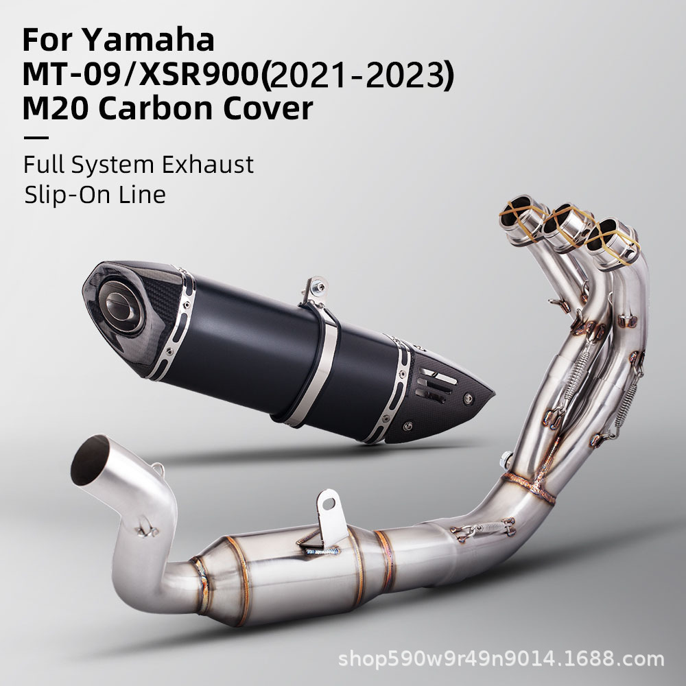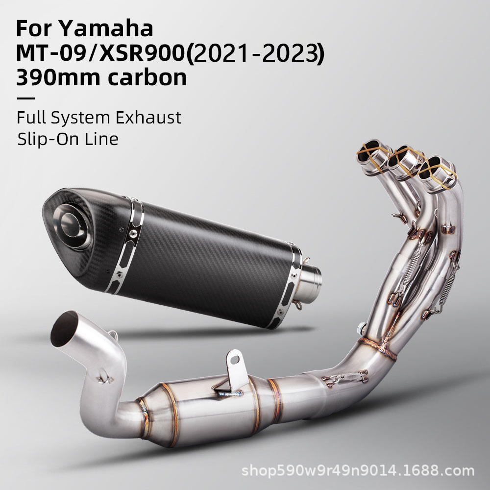 オートバイの排気改造に適しています MT-09 ステンレス鋼フロントセクション + 斜め三角形カーボンファイバーテールセクション 2021-2023