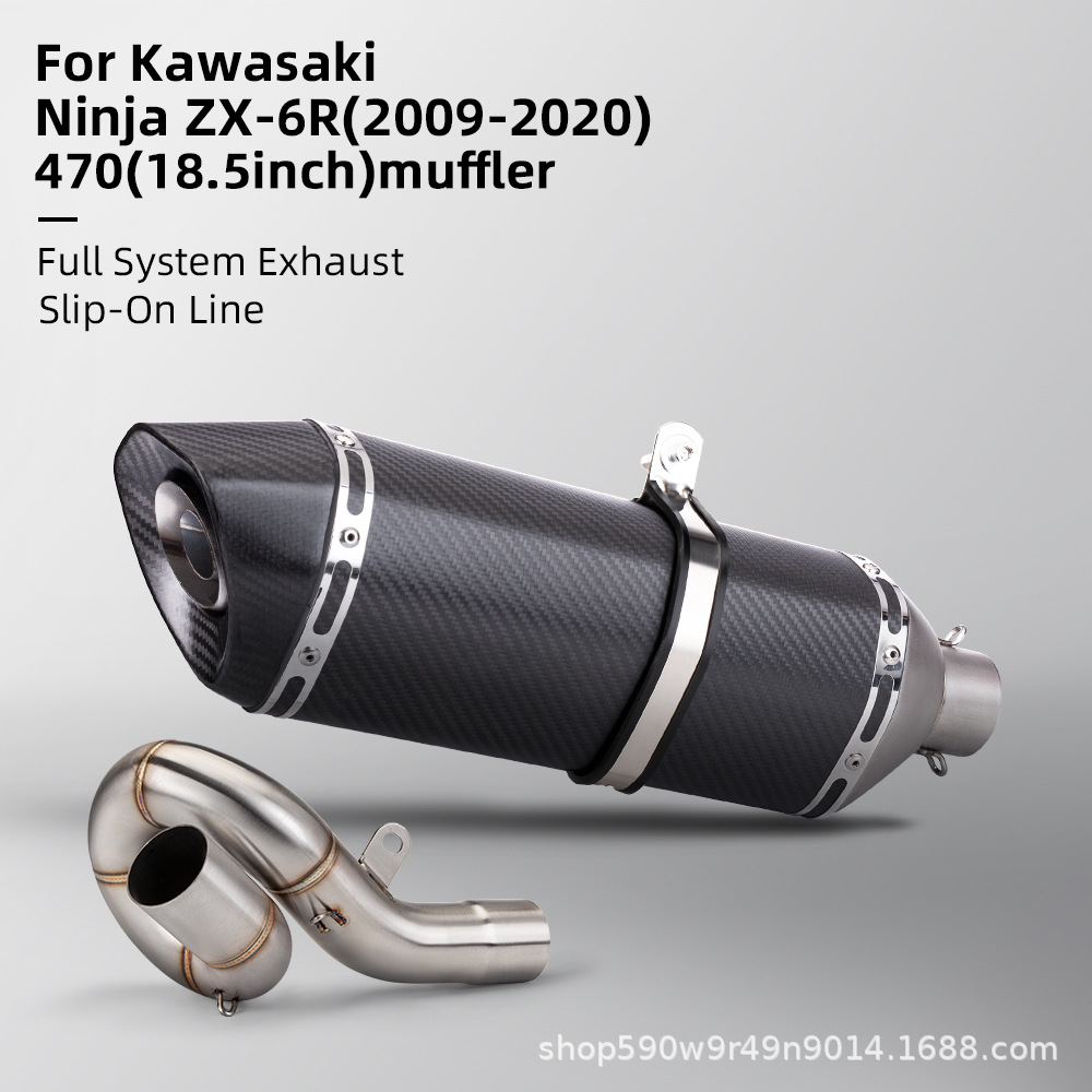 オートバイ排気改造 ZX-6R ステンレススチールスイングミッドセクション + 470 ラウンドテールビッグヘックスカーボンファイバーテールセクション 09-20