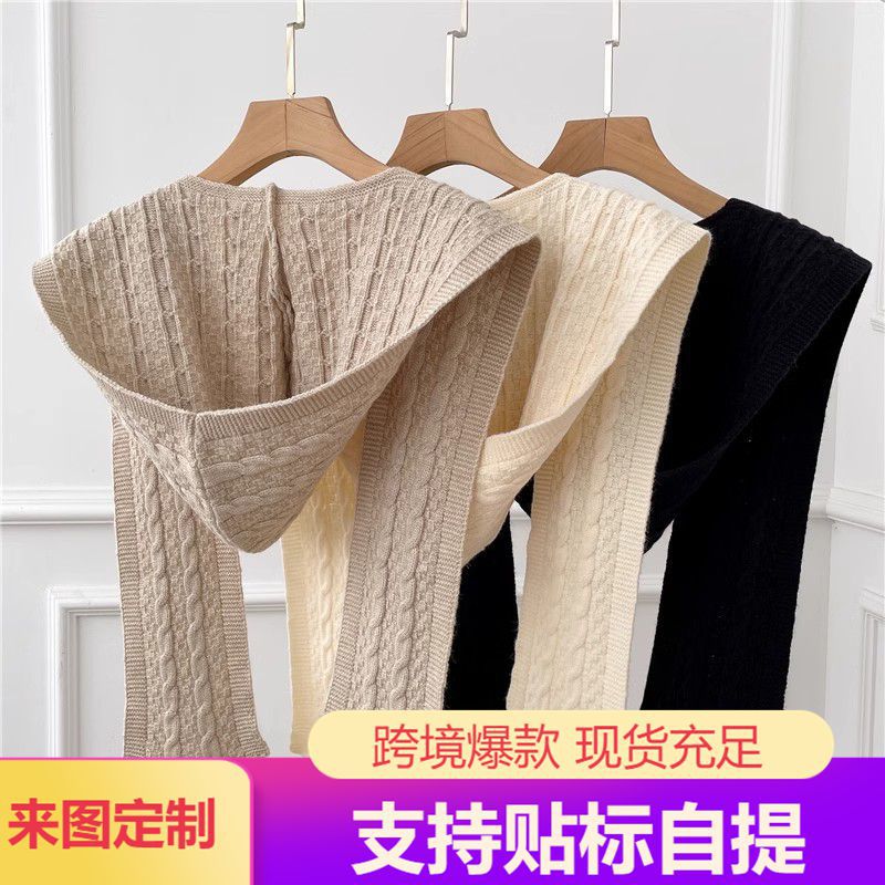 毛糸で首を囲む女性の首を囲むマントのダブルアイテム