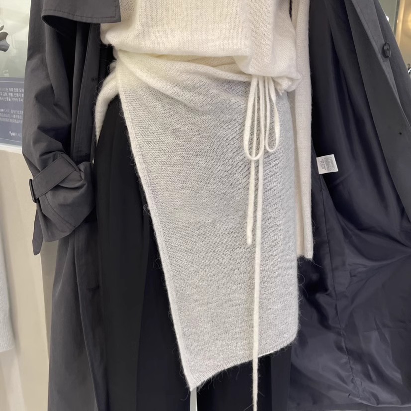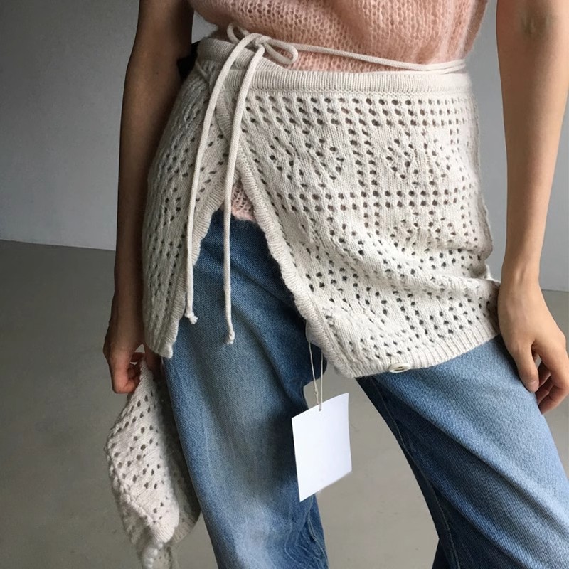 韓国東大門秋冬新作デザイン感高腰透かし彫りフック花ストラップ編み毛糸おならカーテン囲いスカート女