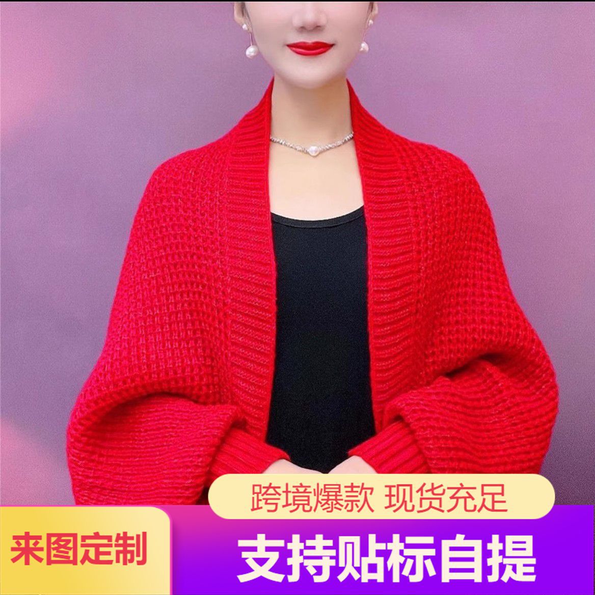 ニットのショールは春夏に外に女性のファッション的な洋風の高級なネットの赤いシャツの小さいショールの緑色のマフラーの毛糸を掛けて肩を掛けます。