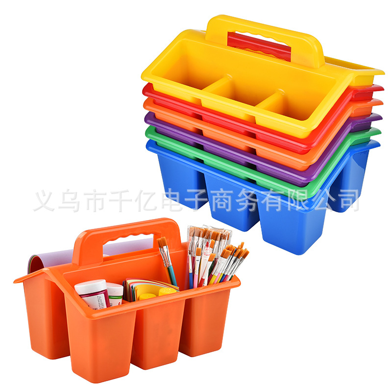 クロスボーダー爆型レインボープラスチックバスケット手提げ分格纳バスケット美术絵笔教室ツールバスケット絵画バスケット