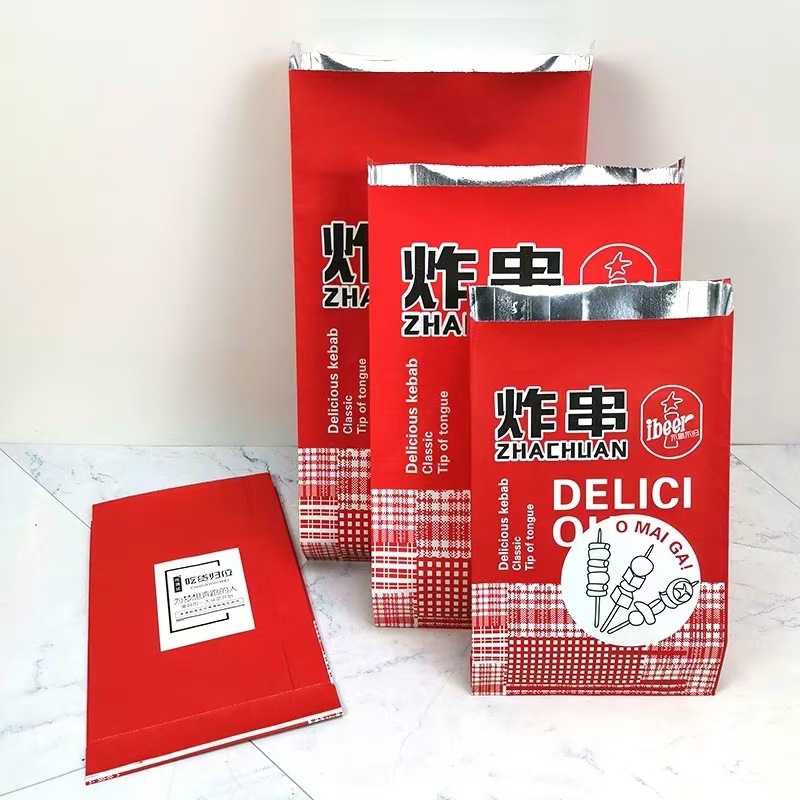 バーベキュー包装袋錫付き紙袋アルミ箔防油保温使い捨て販売串串包装袋印刷