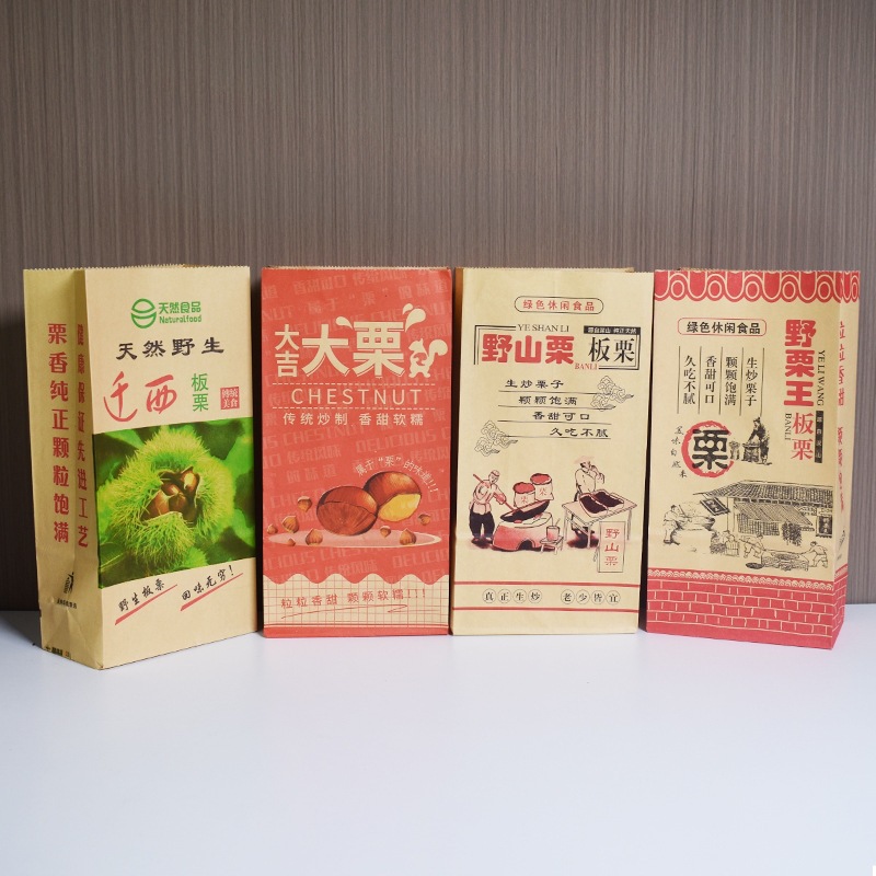 移転西栗紙袋砂糖炒め栗包装袋野山油栗手提げ袋厚手ナッツクラフト紙袋印刷