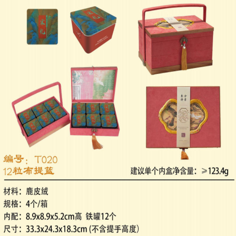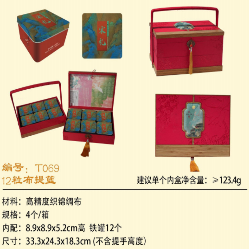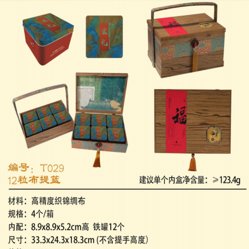木箱錦布面ハイエンド中秋節月餅包装箱空ギフト箱鉄箱8粒12粒二重手提げかご