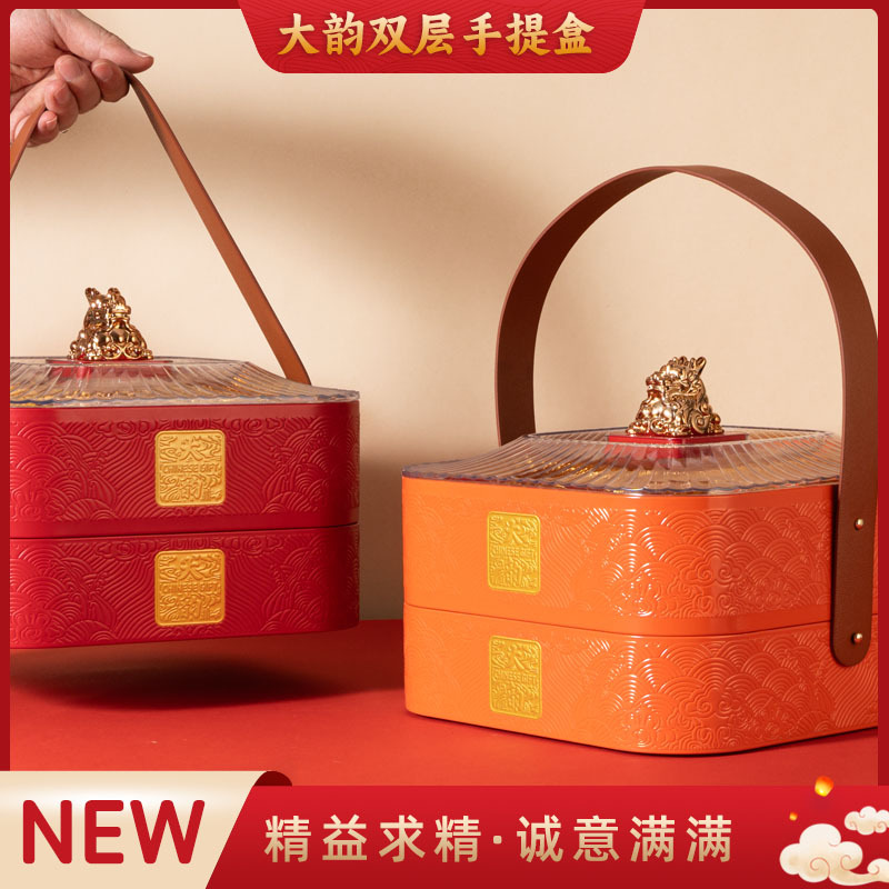 中国風月餅箱五福臨門二重月餅箱高級月餅礼箱手提げ月餅鉄箱現物