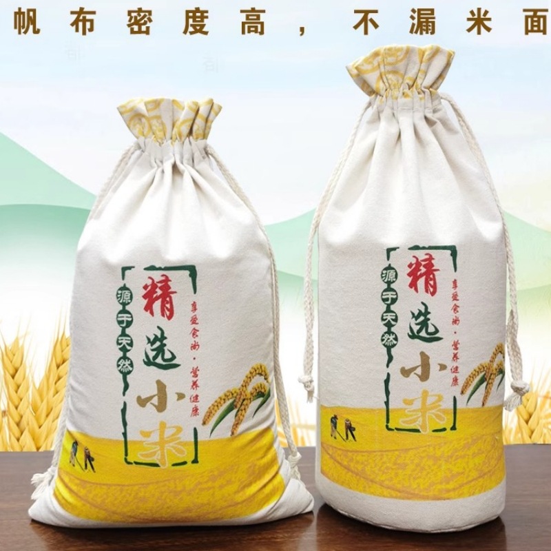 キャンバスの小さい米の包装袋は5斤の10斤の米の袋の米の袋のキャンバスの巾着袋を作って携帯します。