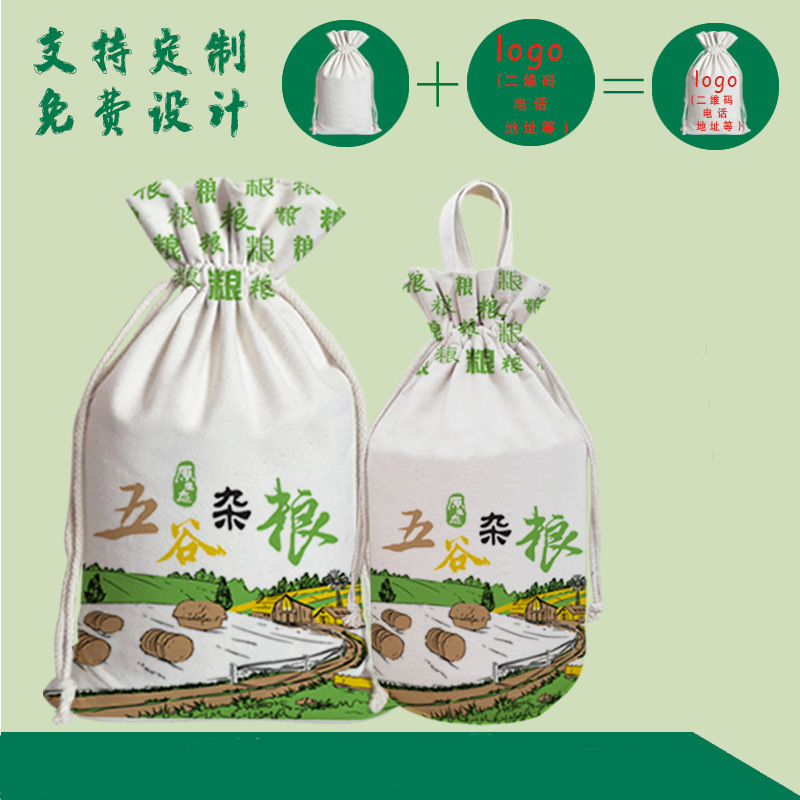 現物卸売り五穀雑穀カラー布袋雑穀帆布袋ポケット巾着袋はロゴを印刷できる