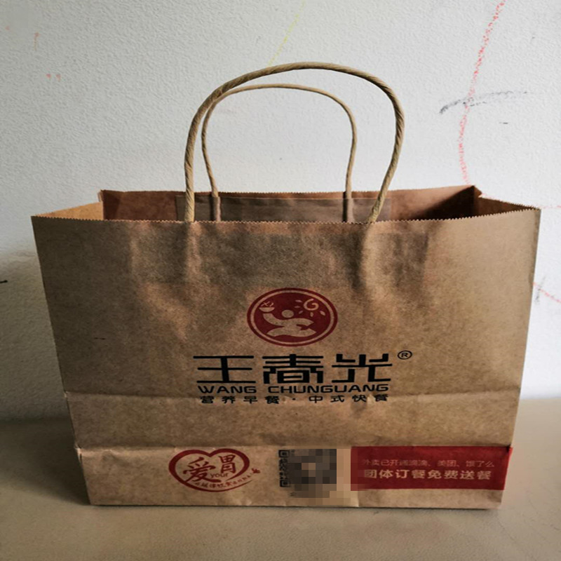 クラフト紙袋手提げ袋はミルクティーの出前服装店の袋にロゴを印刷してプレゼントを持ってプレゼント袋を包装する