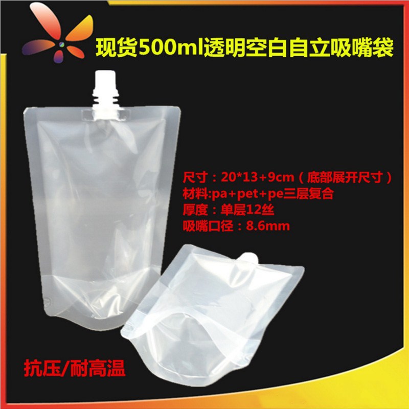 現物複合自立袋プラスチック透明空白口袋ミルクティージュース豆乳液体包装袋液体