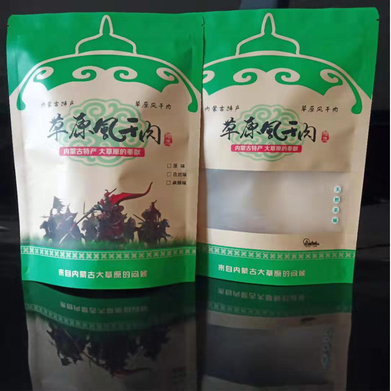 草原風乾肉乾自立袋牛肉自封自立袋卸売りクラフト紙自封袋牛肉乾包装