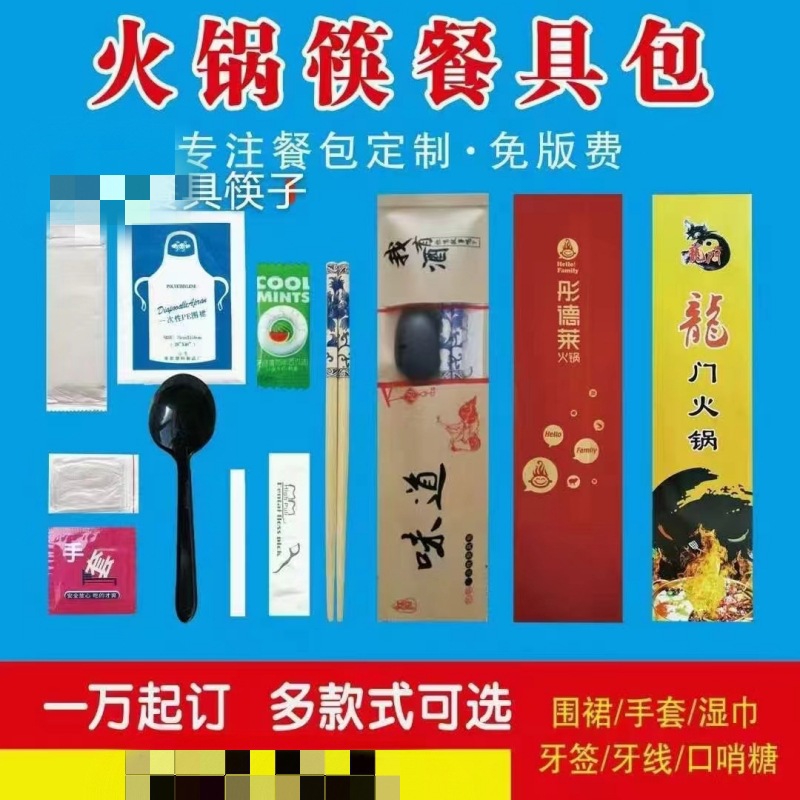 割り箸四点セットテイクアウトカトラリー竹箸スプーンペーパータオルつまようじ四合一セット制作可