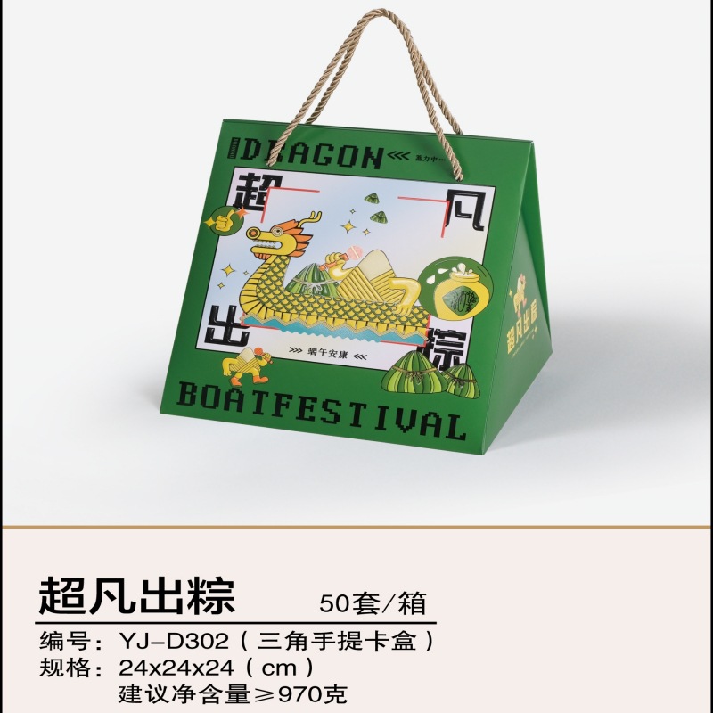 特別価格の端午のちまきの贈り物の箱の手提げ袋の包装箱の三角形の緑色の大気のちまきの外の包装の紙の箱