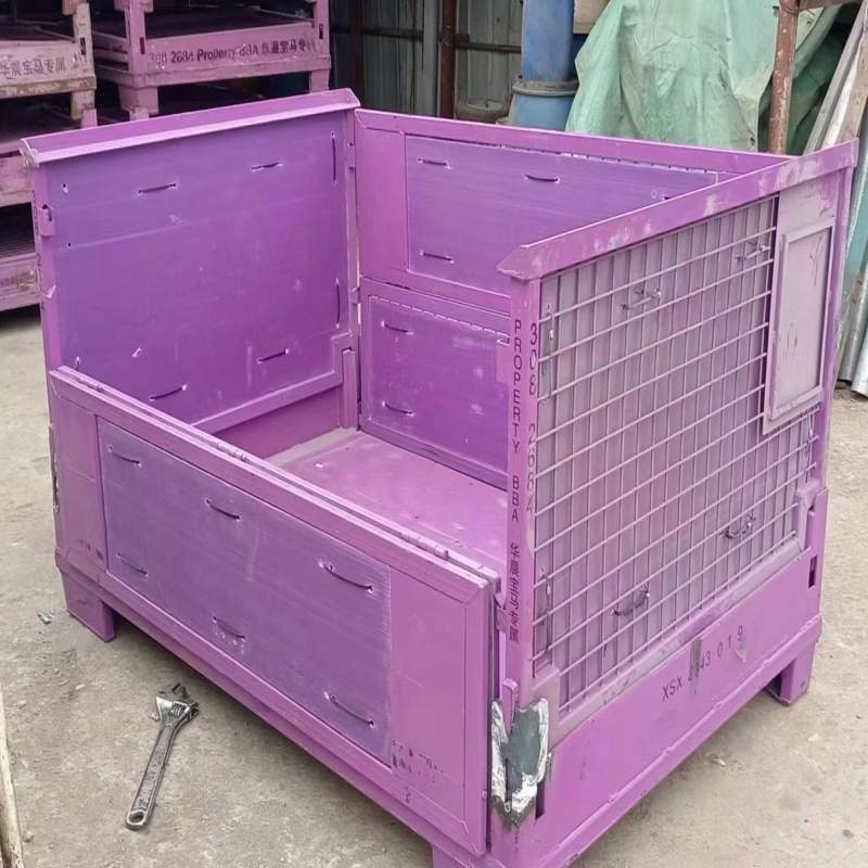 折り畳み鉄屑箱廃棄物収集箱鉄質部品枠鉄皮箱重積層回転かご中古回転箱