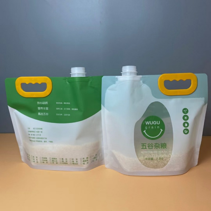 米は口を吸う袋を手にして自立した五穀の雑穀の食品袋を密封して厚く防湿します。