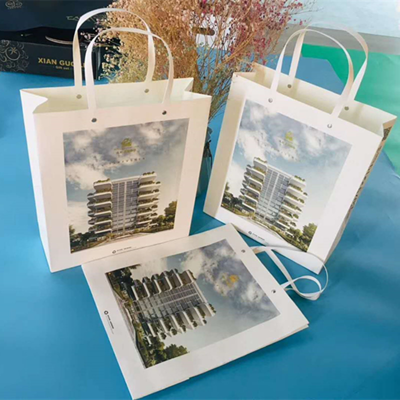 【メーカー製作】ホテルギフトバッグクラフト紙包装袋白い紙詰まり包装袋手提げ袋印刷模様