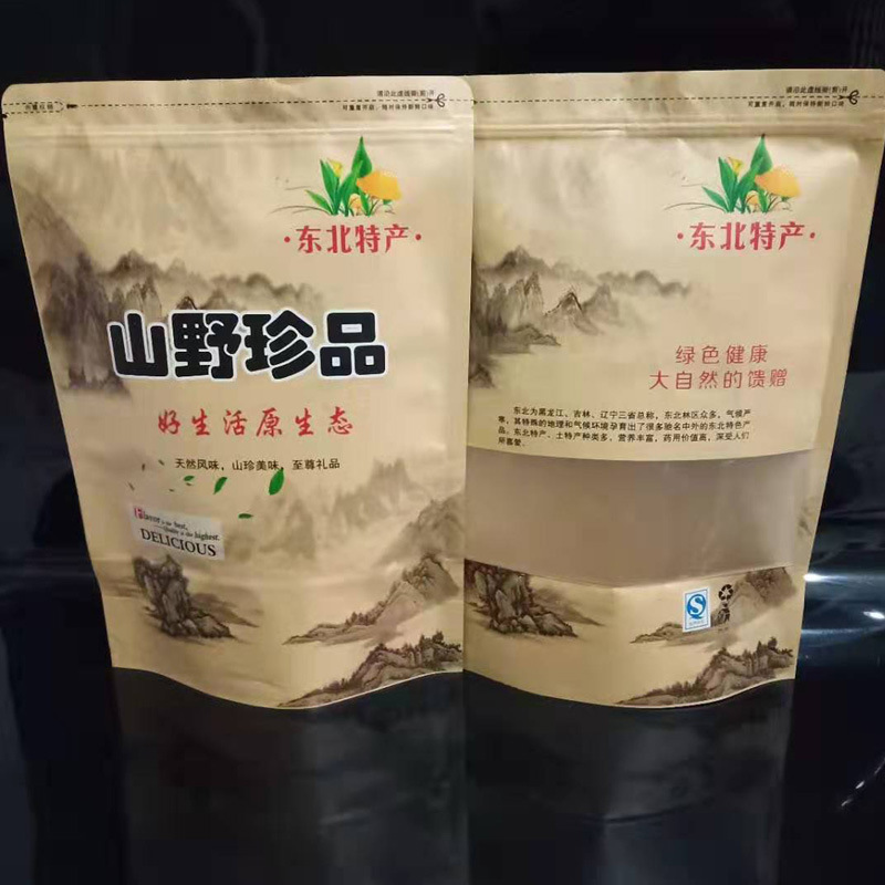 山野珍品東北特産品通用牛革自封自立窓開け包装袋干物山貨物包装袋