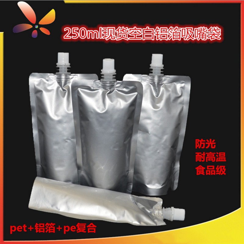 現物純アルミ箔プラスチック吸口袋ミルクティージュース豆乳液体包装袋液体アルミ箔自立袋