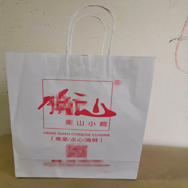 手提げ袋は白い紙の手提げ袋を印刷して作っています。