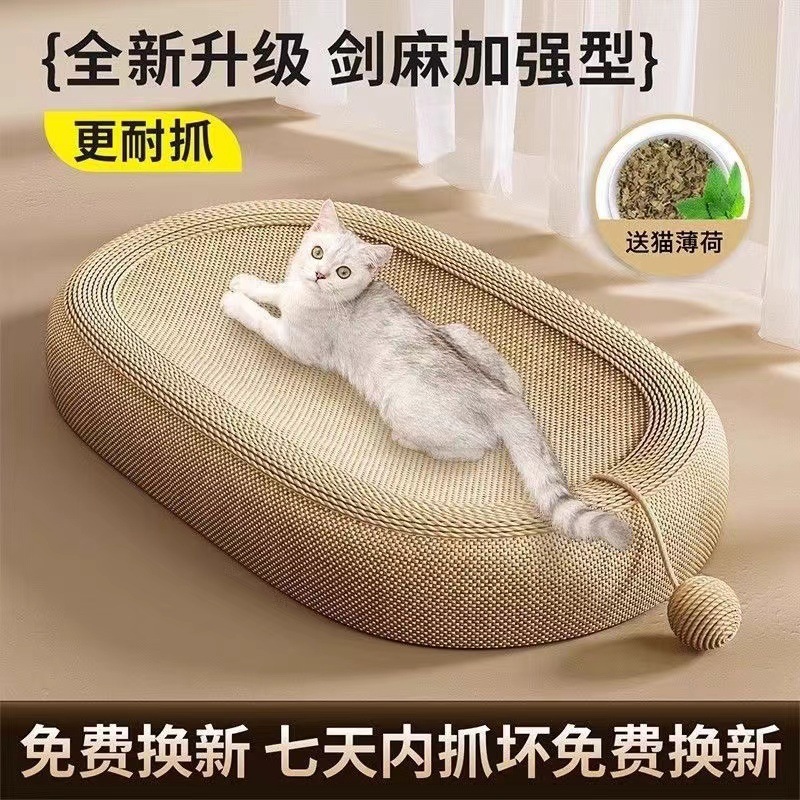 POPOLO フルサイザル麻ビッグフェイス猫スクラッチボード猫の巣夏長方形猫ソファ厚みのある猫スクラッチボード楕円形