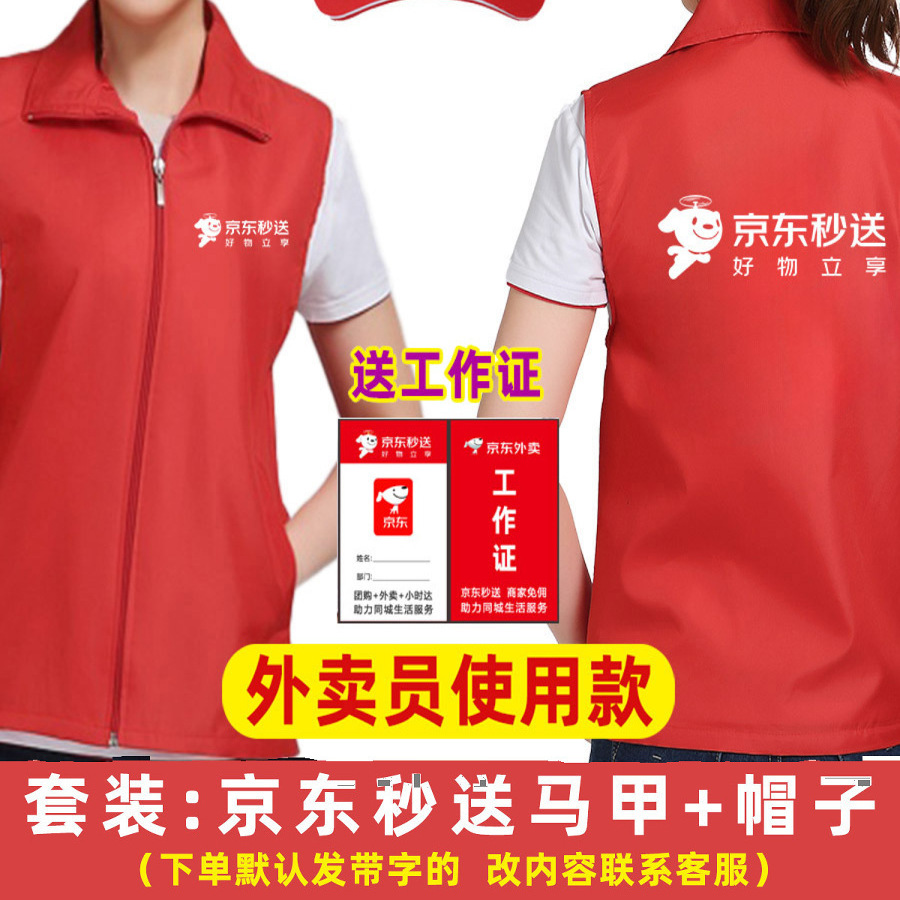 翁楷京東出前秒送馬甲送作業証工牌作業服推進員地押しコート印字ロゴ