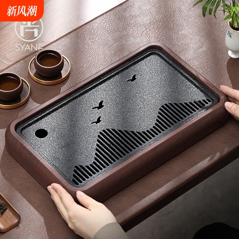 Wengkai ティートレイ 2025 新家庭用模造黒金石シンプルな小型貯水ドライバブルテーブルカンフーティーセット排水