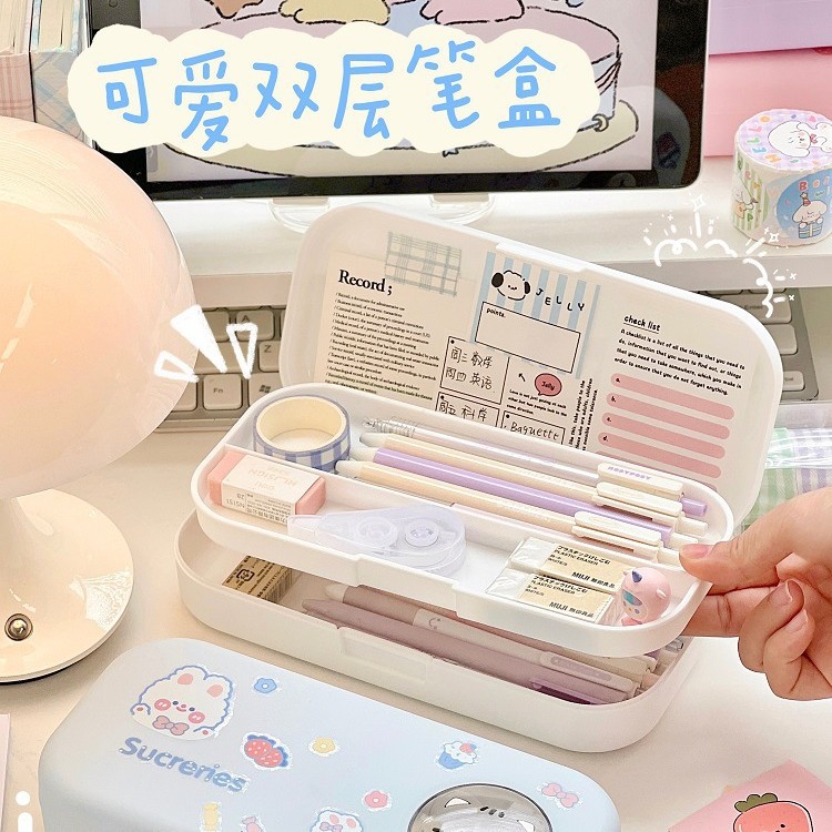 翁楷かわいい文房具ケース鉛筆ケース文房具ケース収納箱漫画子供女の子中学校小学生動物