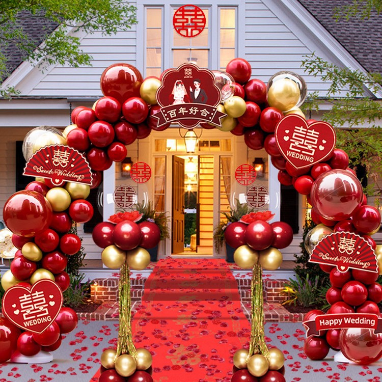 翁楷風船アーチ結婚スタンド装飾ウェディングシーン配置入り口風船屋外路引結婚式農村