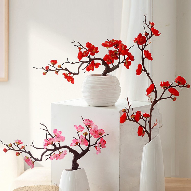 翁楷は梅の花の花の枝を模して客間の乾いた花の盆栽の梅を飾って花の盆栽の客間のインテリアを飾っています。