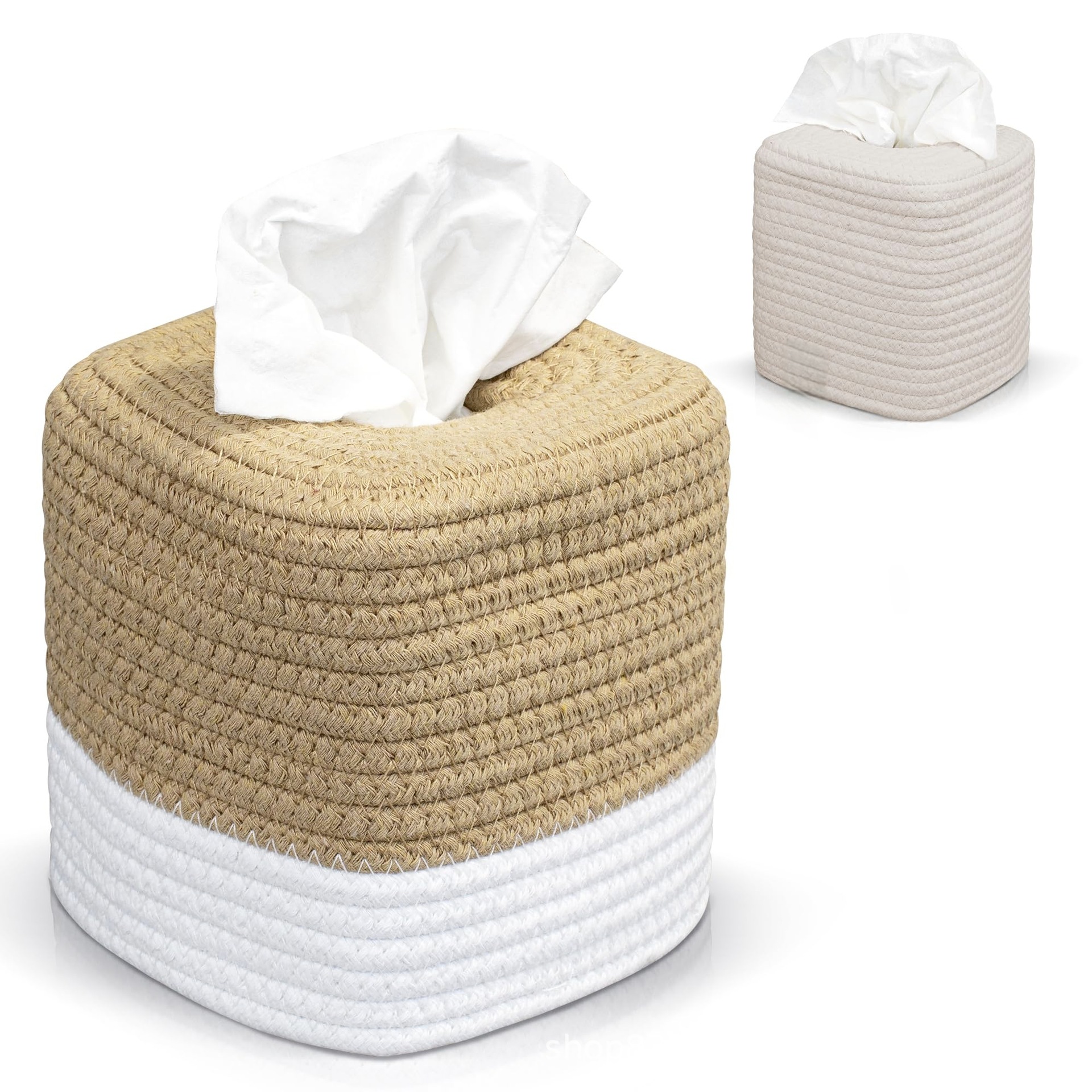 アマゾン綿の線の四角形のティッシュの箱の多機能の寝室の客間のお茶の数は紙の整理の箱のティッシュの装飾の箱を引き出します。