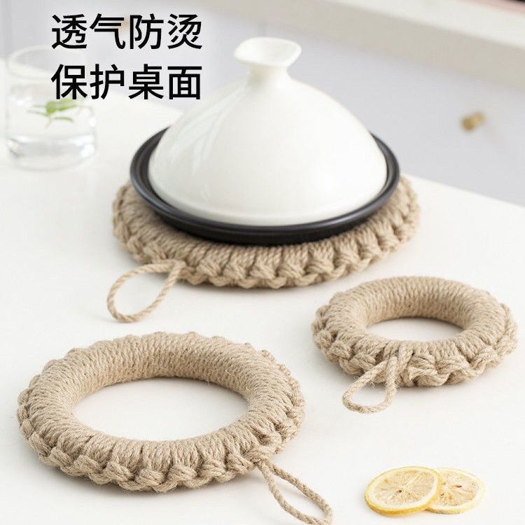 手編み工場現物麻縄編みマット鍋輪皿マット断熱鍋マット日本原色の食事マット
