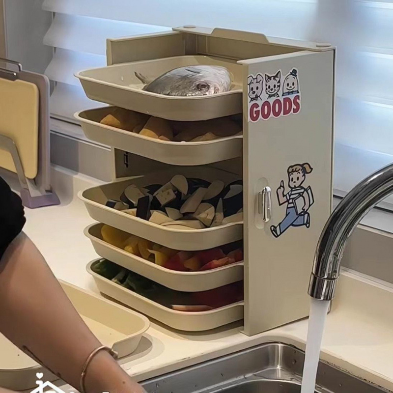 鍋のおかずの皿の家庭用台所の多層の野菜の神器の多機能の水切りのおかずの皿式の折り畳みの野菜の棚