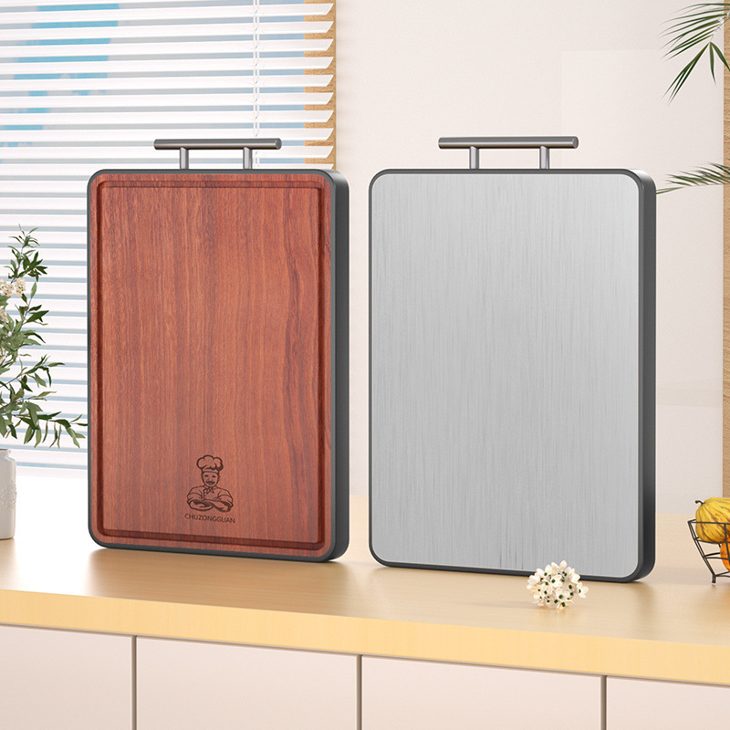 烏檀木まな板防かび家庭用ステンレスまな板は実木の木の板を占めてまな板の両面のまな板を切ります。