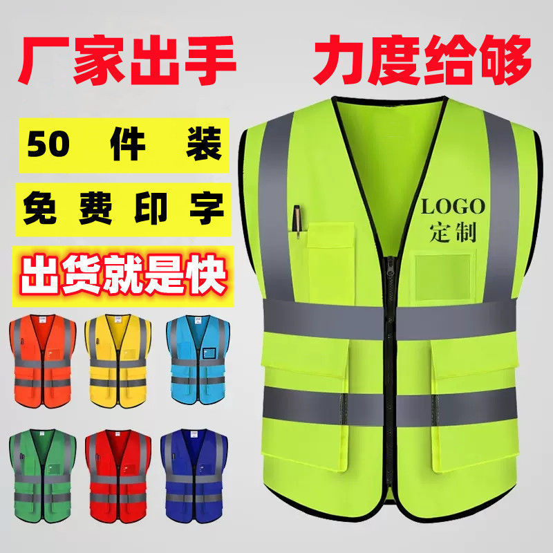 〖50枚〗反射ベスト、厚手の反射服、建設現場、通気性のある印刷された市町村反射服