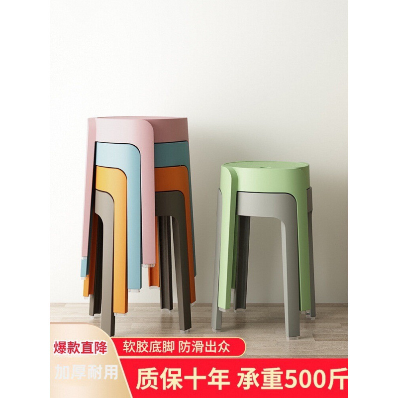 北欧ファッションラウンドスツールプラスチック厚みのある大人のスツール積み重ね可能なダイニングテーブルベンチホームチェアスペアスツールハイスツール