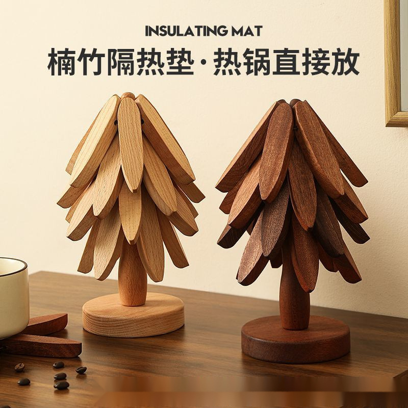 無垢材断熱マット、プレースマット、火傷防止マット、ツリーホーム高温耐性テーブルマット、ポットマット、コースターマット、高級感