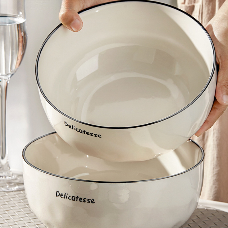 陶磁器のスープの碗の大きいサイズの家庭用の2024新型のスープの碗の高級感のスープの碗の麺の碗の大きい碗