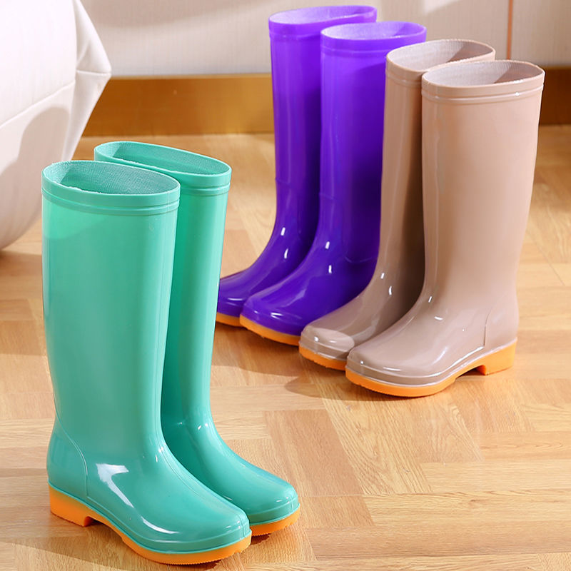 女性用のハイチューブ韓国風ファッションレインブーツ、ベルベットの暖かい滑り止めレインブーツ、ウォーターブーツ、大人のキッチン洗車ゴム靴、夏