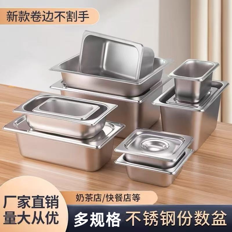 ステンレスの数鉢の蓋付きのバイキングの麻辣热の長方形の点数の鉢の乳茶店のファーストフードの食堂は料理の鉢を用意します。