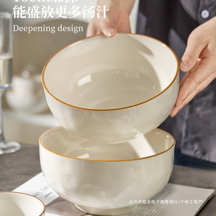 陶磁器のスープの碗の大きいサイズの家庭用の2024新型の大きい碗のスープの碗の感はスープの碗の個人の泡の碗を盛って