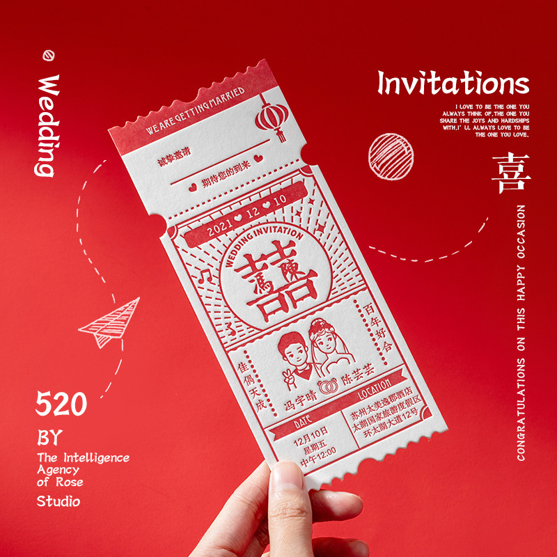 愛の博物館の赤い本のネットの赤いチケットの根は招待状の創意の結婚の招待状を招待します。